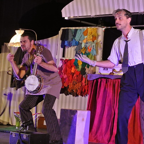 Approchez petits et grands, si vous voulez découvrir ce que deviennent les vieux gants !… Monsieur Paul et Michel vont de ville en ville, récoltent les gants hors d’usages et oubliés afin de raconter des histoires dans leur grande boîte à gants. Quels rapports entre une bataille intergalactique, un poulailler déjanté, une ancienne vedette du music hall ou un jardin secret ? Simplement une seconde vie pour des gants, offerte avec tendresse et poésie, en musique et surtout avec beaucoup d’humour !